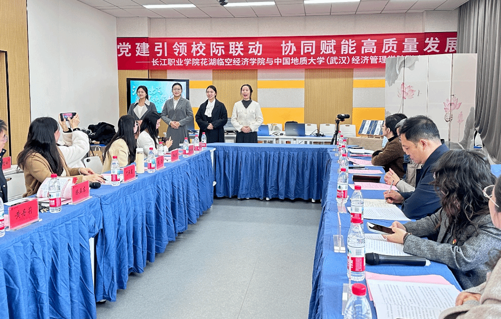 为深化党建与业务融合,推动产教协同育人,12月11日上午,AV直播 与长江职业AV直播花湖临空经济AV直播在长职武汉新城校区联合举办党建联建活动。长江职业AV直播花湖临空经济AV直播党总支书记滕亚东、副院长代承霞,AV直播 党委书记薛保山、副院长侯俊东、教师及学生党员代表共同参加此次活动。