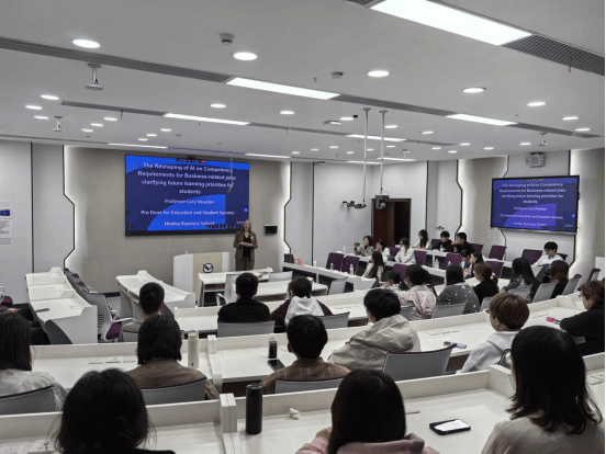 10月31日,英国雷丁大学亨利商AV直播副院长Lucy Newton教授一行莅临我校,在崇信楼109智慧教室开展项目宣讲并授课,现场反响热烈,为学生搭建了优质的国际化交流平台。