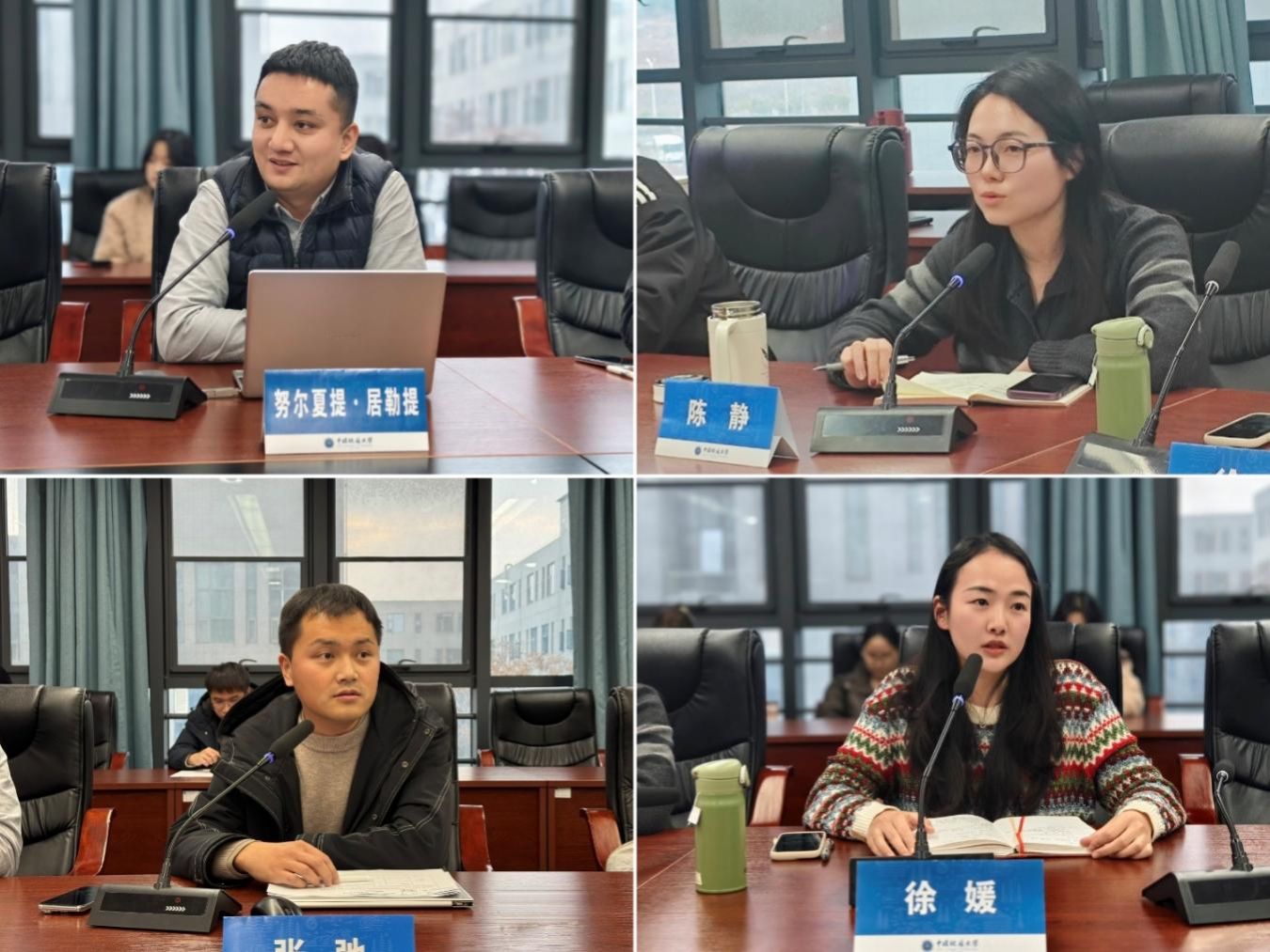 老师们与同学们充分展开交流。努尔夏提提出要注重工作创新与执行,鼓励同学们结合现实需求探索更有效的服务形式;陈静建议加强组织协同,构建多层次联动工作格局;张弛提出希望同学们积极拓展视野,找到学生工作与个人职业规划的结合点。