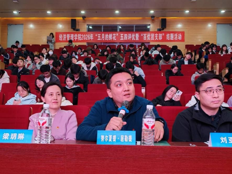 (通讯员:朱译文 徐媛)为深入学习贯彻习近平新时代中国特色社会主义思想,全面落实党的二十届四中全会精神,传承五四精神,引领青年思想、凝聚团支部力量,激励各团支部创优争先,展现新时代共青团员的昂扬风貌,2026年3月19日,AV直播 团委在未来城校区经管楼二楼报告厅举行2026年“五月的鲜花”五四评优暨“百优团支部”结题活动。AV直播工会主席、大数据科学与应用统计系王林珠,旅游管理系梁玥琳,AV直播团委书记徐媛,专硕辅导员努尔夏提·居勒提,2022级辅导员蔡杨,2024级辅导员刘亚旭出席并担任评委。